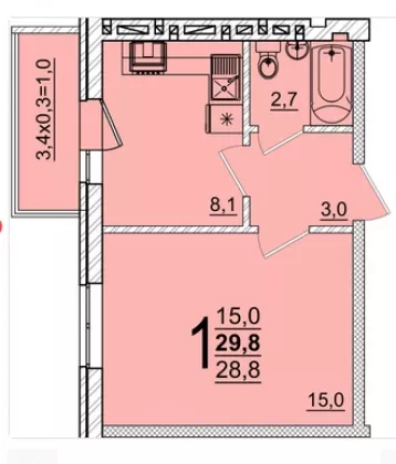Продается однокомнатная квартира, 30 кв.м., 4/5 эт