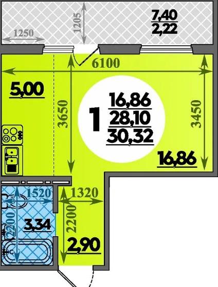 | Площадь, кв.м. | 30.32 |