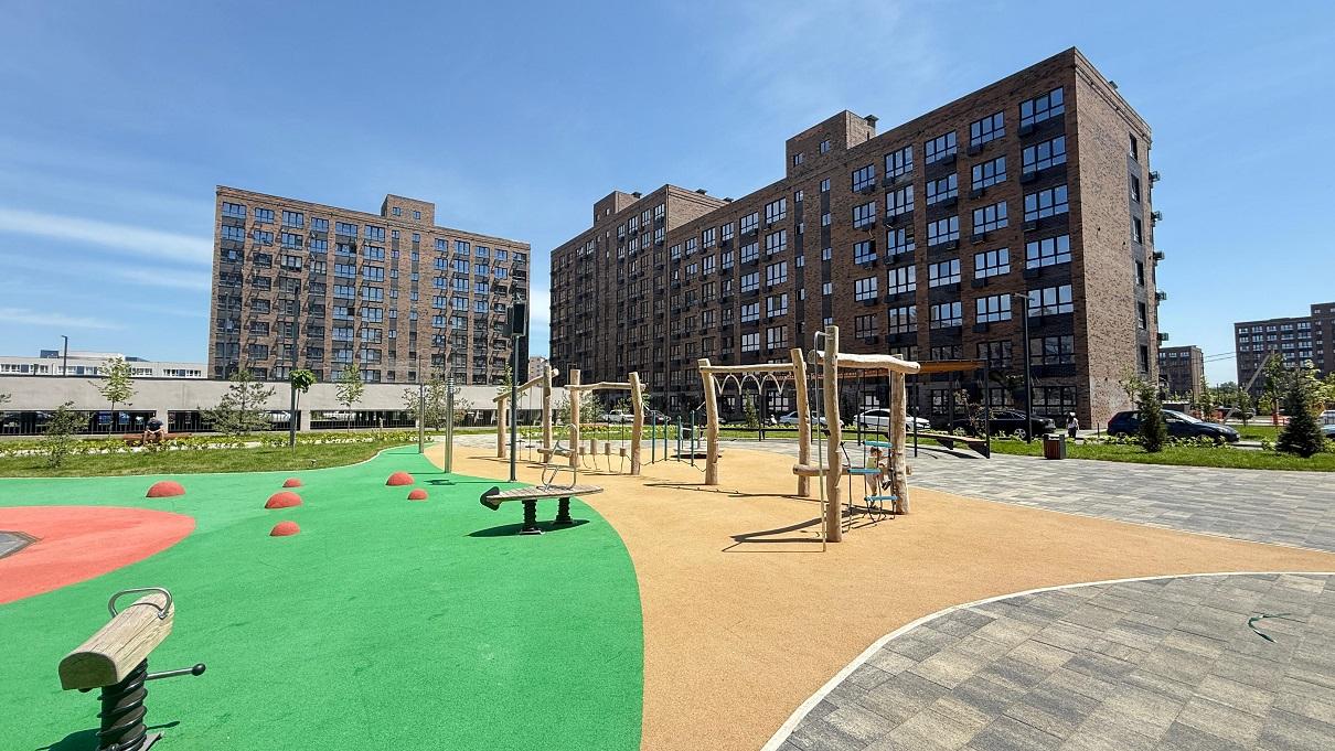Уютные беседки, современные детские и спортивные площадки на стилобате, автоматические поливы газонов, аллеи для прогулок, широкие дворы.