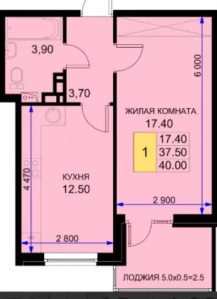 Продается однокомнатная квартира, 40 кв.м., 4/7 эт