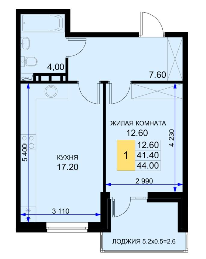 Продается однокомнатная квартира, 44 кв.м., 6/7 эт