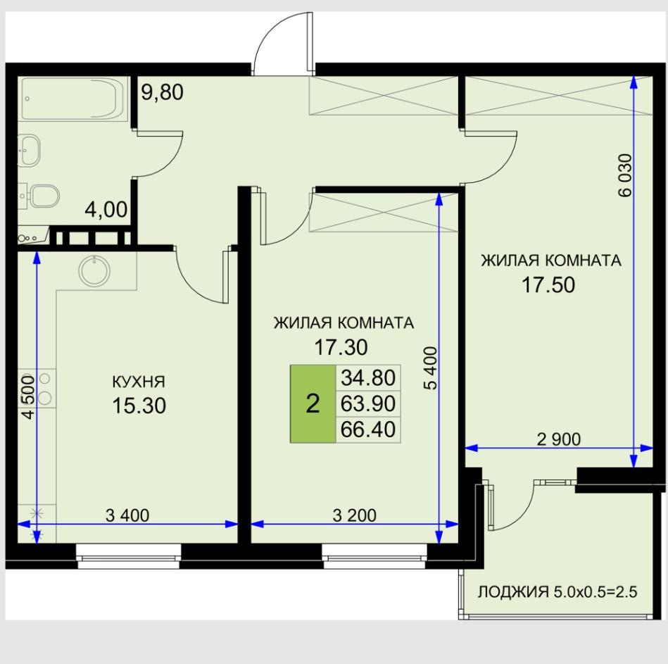 Продается 2-х комн. квартира, 68 кв.м., 2/9 эт