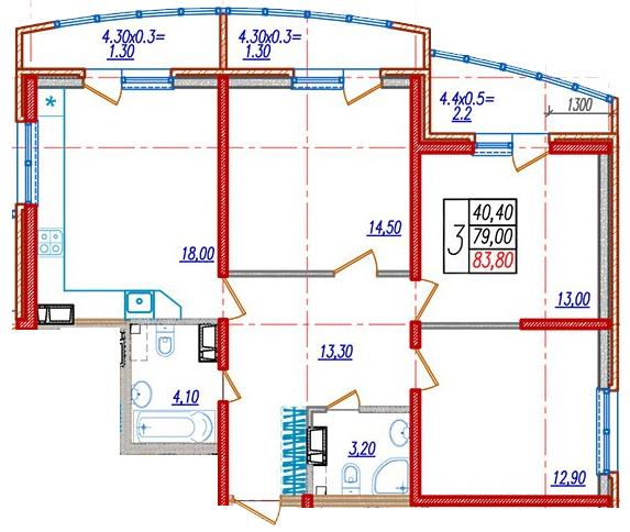 Продается 3-х комн. квартира, 83.8 кв.м., 17/24 эт