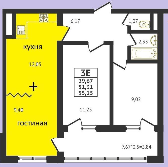 Продается 3-х комн. квартира, 55.15 кв.м., 12/17 эт