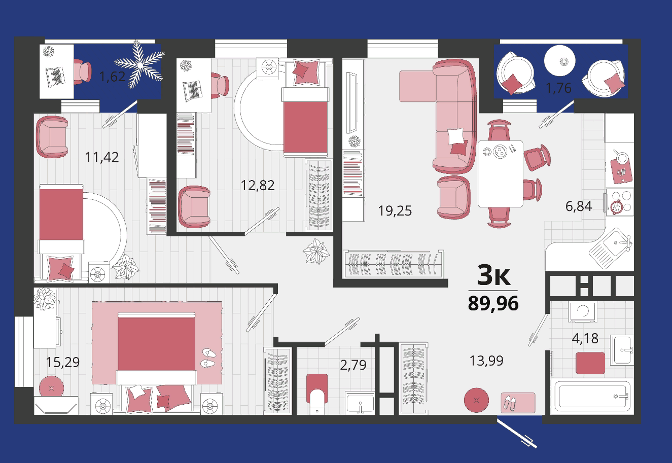 Продается 3-х комн. квартира, 90 кв.м., 5/16 эт