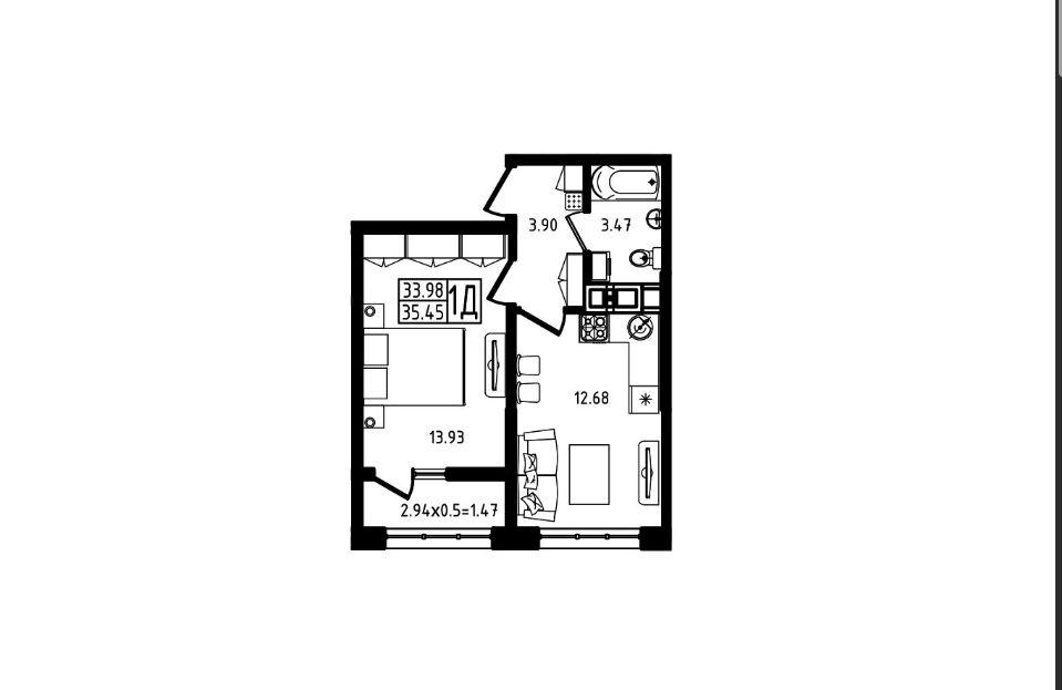 Продается однокомнатная новостройка, 41 кв.м., 3/8 эт