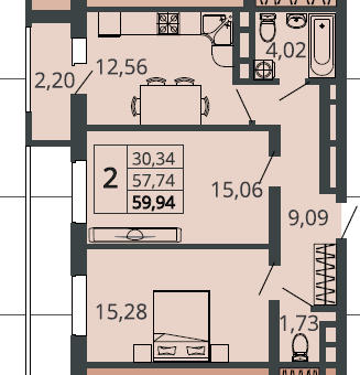 | Комнат в квартире | 2 |