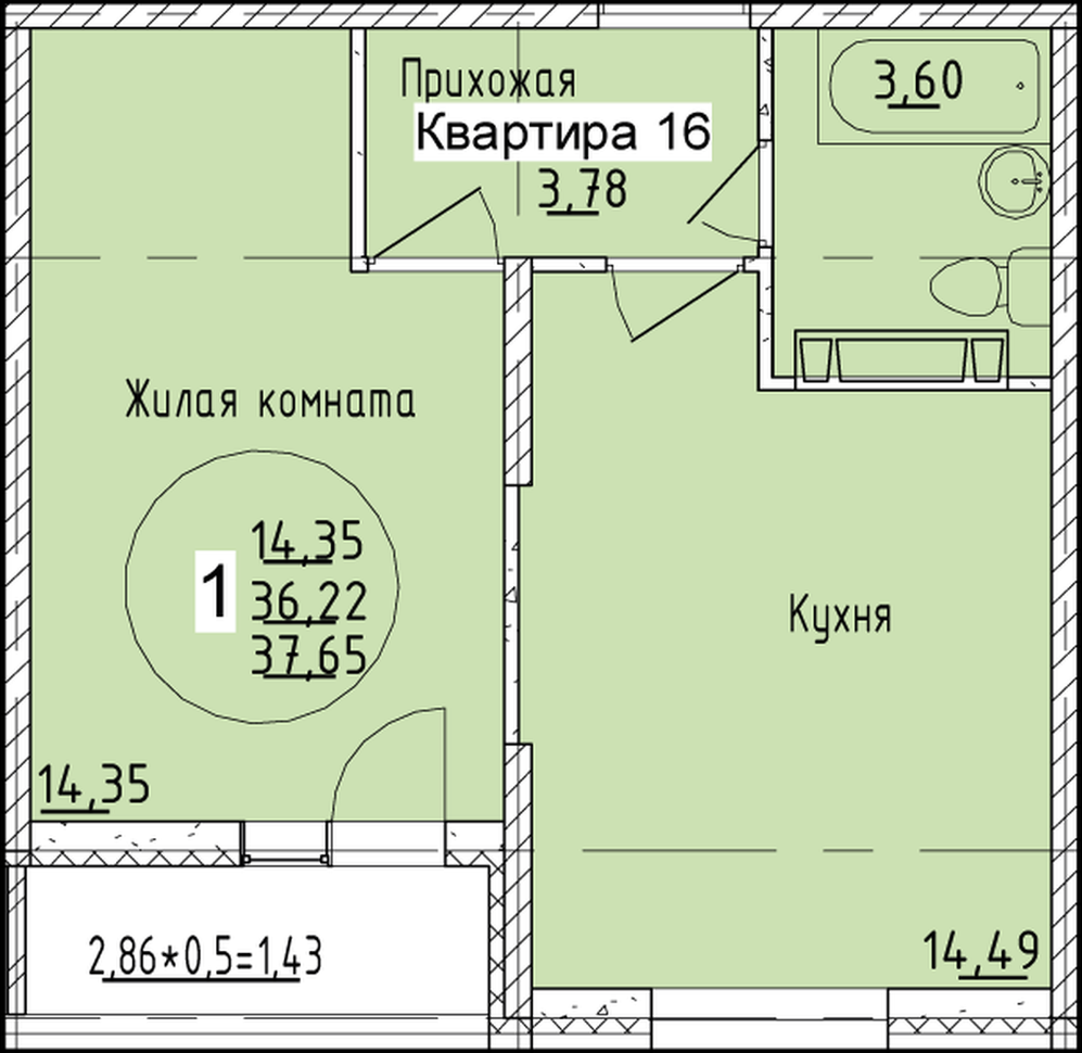 Продается однокомнатная новостройка, 38 кв.м., 10/16 эт