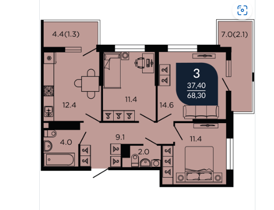 Квартира в современном жилом комплексе, трехкомнатная, в сданном доме от подрядчика! Проходят все гос. программы! Открытие ипотеки любой сложности!