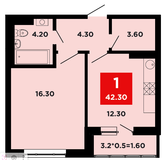 Продается однокомнатная новостройка, 42.3 кв.м., 17/20 эт
