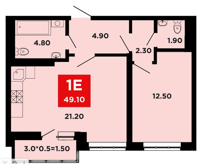 Продается однокомнатная новостройка, 49.3 кв.м., 13/20 эт
