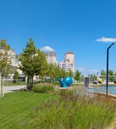 Семейный микрорайон с развитой инфраструктурой: детские сады, школа, поликлиника, детские и спортивные площадки, прогулочные аллеи, остановки общественного транспорта, различные магазины и аптеки — всё в шаговой доступности.