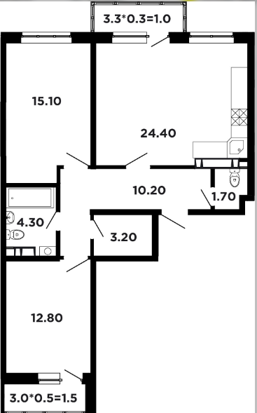 Продаётся квартира с качественной предчистовой отделкой и большой кухней- гостиной от застройщика!!!