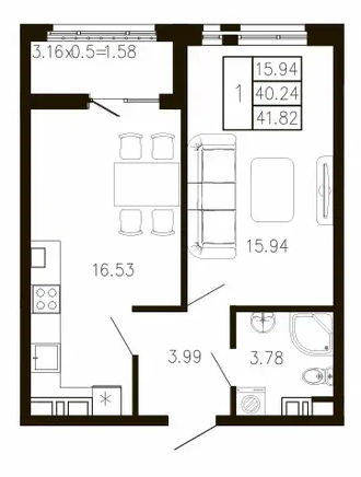 | Площадь, кв.м. | 41.82 |