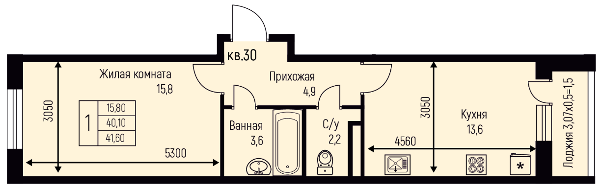 Продается однокомнатная новостройка, 41.6 кв.м., 2/3 эт