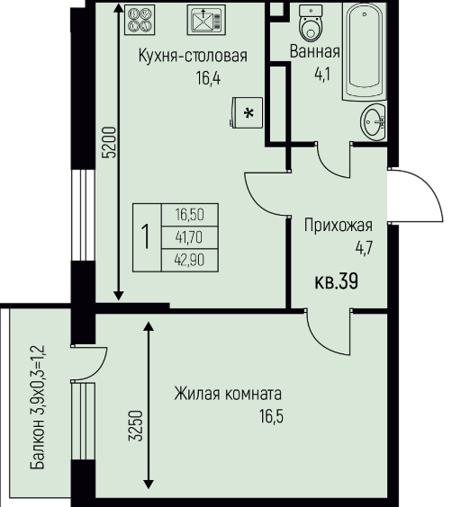 Продается однокомнатная новостройка, 42.9 кв.м., 3/3 эт
