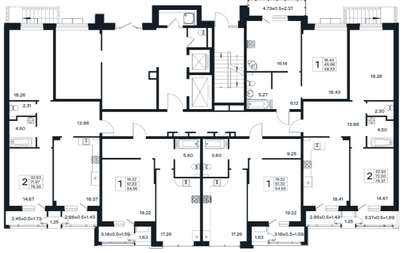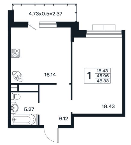 Продается однокомнатная новостройка, 48.33 кв.м., 1/12 эт