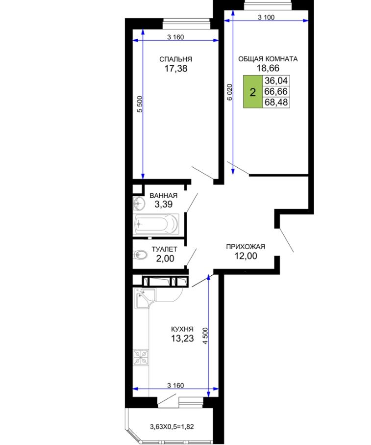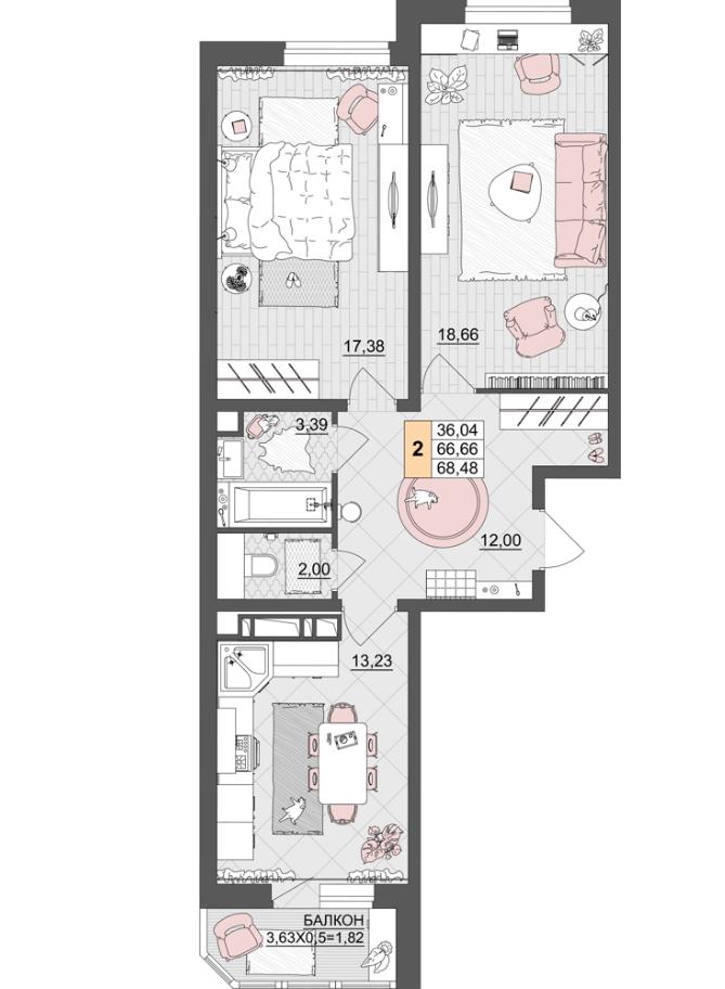 Продается 2-х комн. новостройка, 68.48 кв.м., 8/19 эт