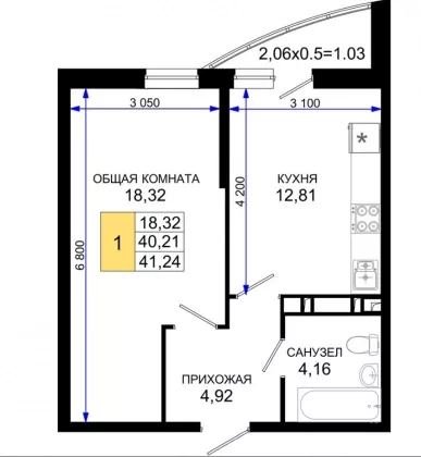 Продается однокомнатная новостройка, 41.24 кв.м., 16/19 эт