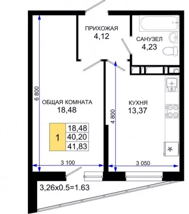 Продается однокомнатная новостройка, 41.83 кв.м., 11/19 эт