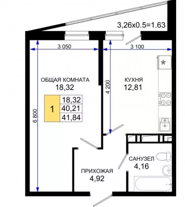 Продается однокомнатная новостройка, 41.83 кв.м., 10/19 эт