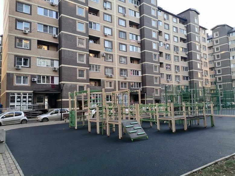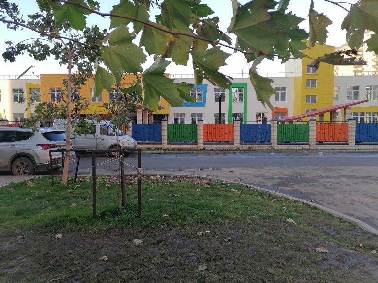 На первой линии ЖК высажен молодой яблоневый сад, красивая аллея с зонами отдыха. Много парковочных мест, двор вымощен плиткой, красочные безопасные детские площадки ограждены от проезжей части.
