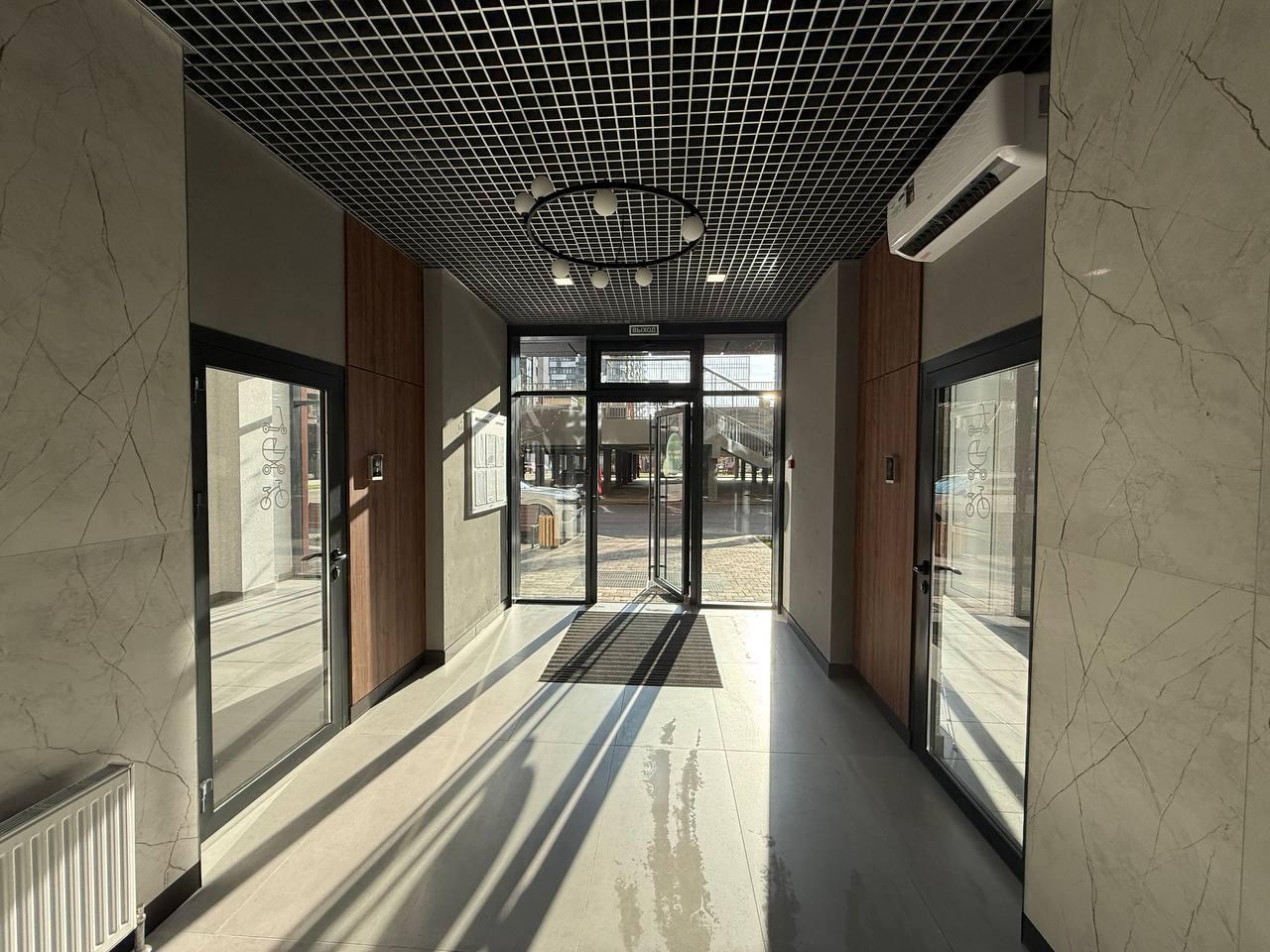 Светлые холлы, в доме три лифта, дизайнерский ремонт, колясочные и боксы для велосипедов, удобная навигация, консьерж-сервис, круглосуточное видеонаблюдение.