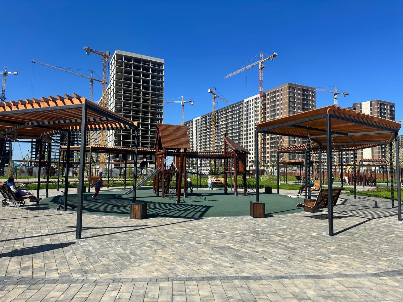 Для отдыха и спорта детские городки, летний кинотеатр, плоский фонтан, арт-объекты (арт- локация для фото), памп-трек, зона барбекю с мангалами и беседками, прогулочные зоны, территория с качелями, шезлонгами, гамаками.