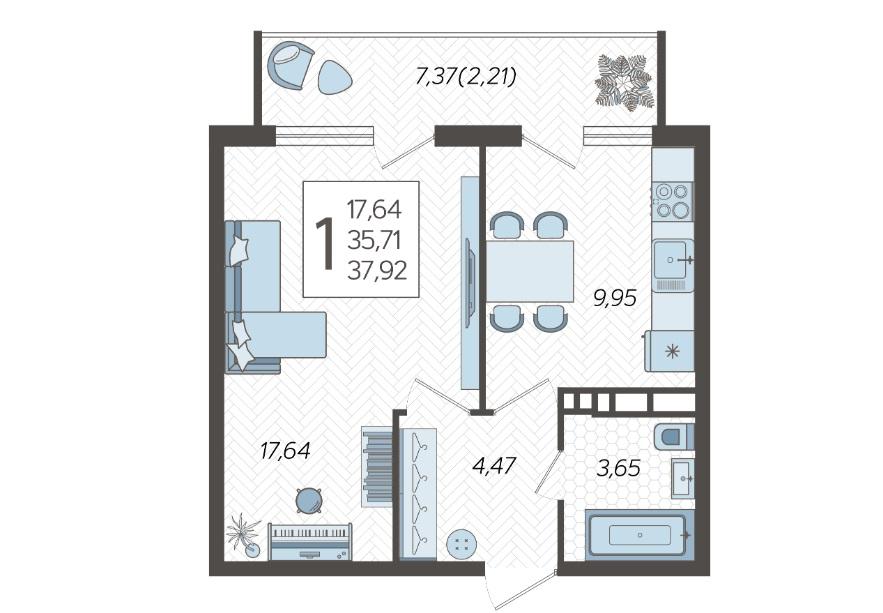Продается однокомнатная новостройка, 38 кв.м., 5/21 эт