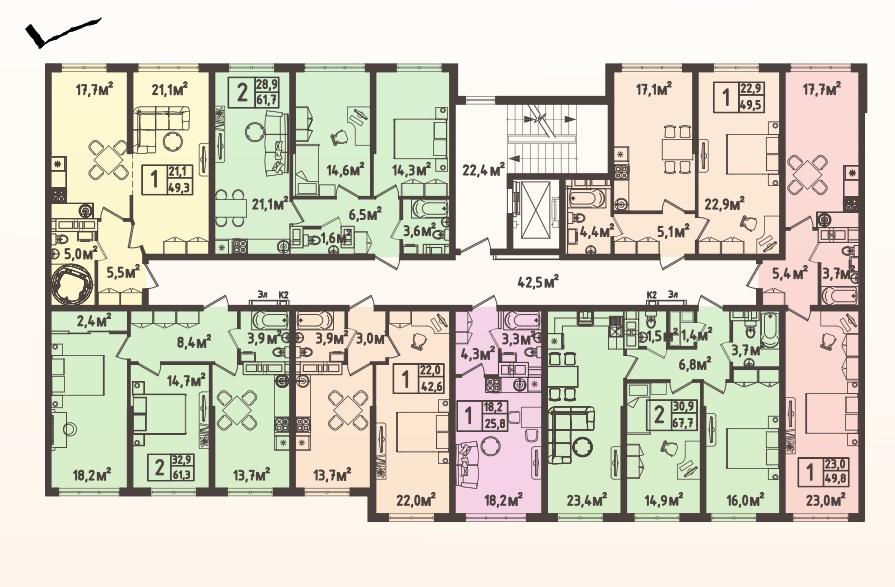 Продается однокомнатная новостройка, 42.6 кв.м., 9/9 эт