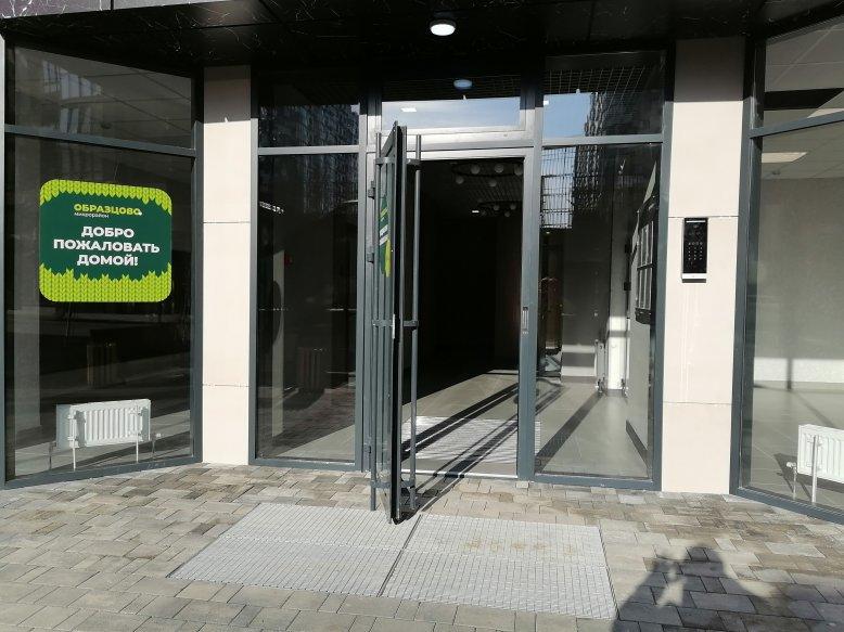 На первых этажах дома витражное остекление там коммерческие помещения разной направленности: магазины, студии фитнеса, салон красоты, аптеки, кафе много другое.