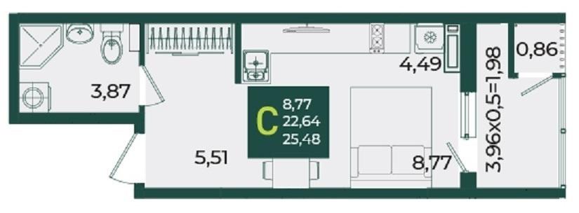 Продается Студия новостройка, 25.48 кв.м., 3/18 эт