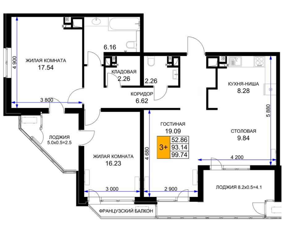 Продается 3-х комн. новостройка, 100 кв.м., 16/16 эт