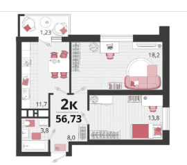 Продается 2-х комн. новостройка, 57.5 кв.м., 13/18 эт
