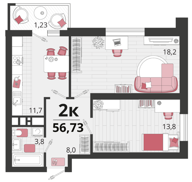 Продается 2-х комн. новостройка, 57.3 кв.м., 14/18 эт