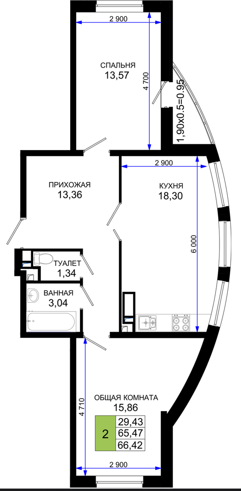 Продается 2-х комн. новостройка, 65.8 кв.м., 3/19 эт