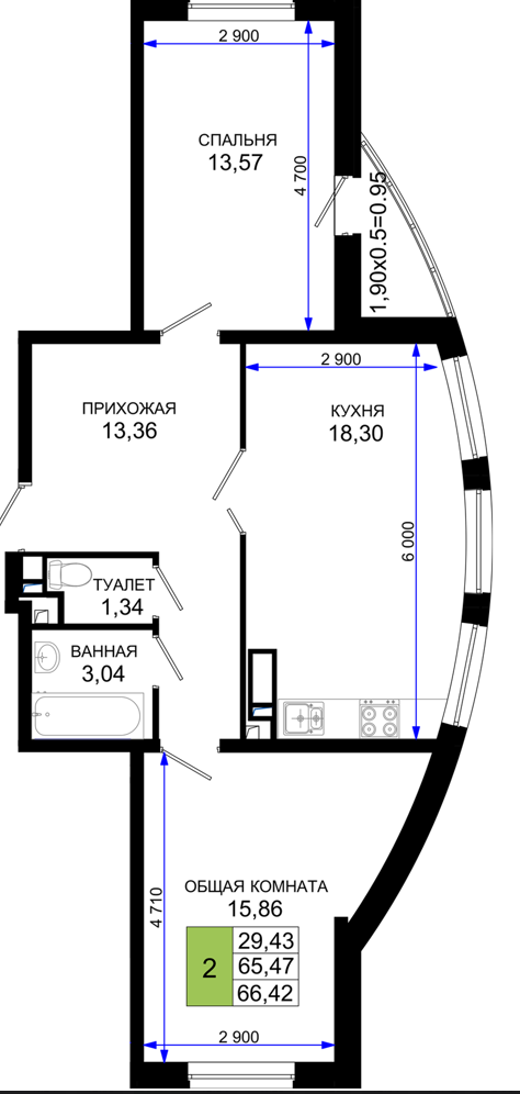 Продается 2-х комн. новостройка, 65.6 кв.м., 11/19 эт