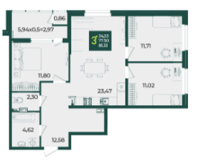 Продается 3-х комн. новостройка, 81.33 кв.м., 7/18 эт