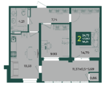 | Жилая площадь | 24.72 |