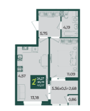 Продается 2-х комн. новостройка, 42.32 кв.м., 7/18 эт