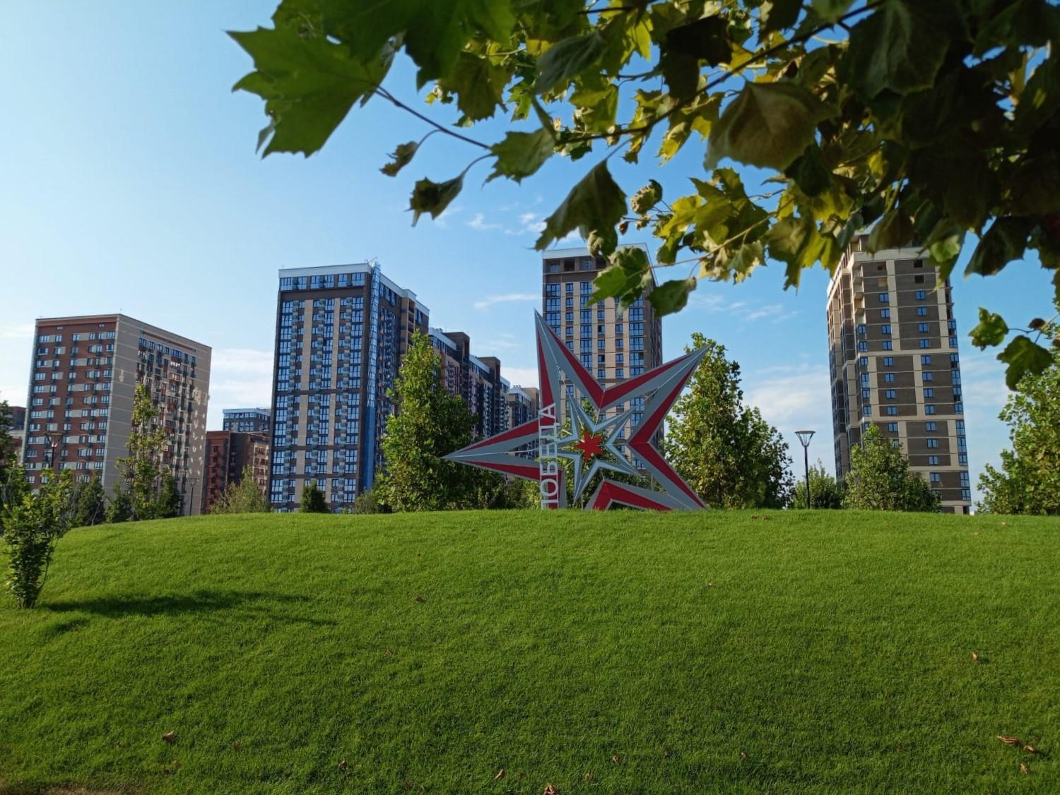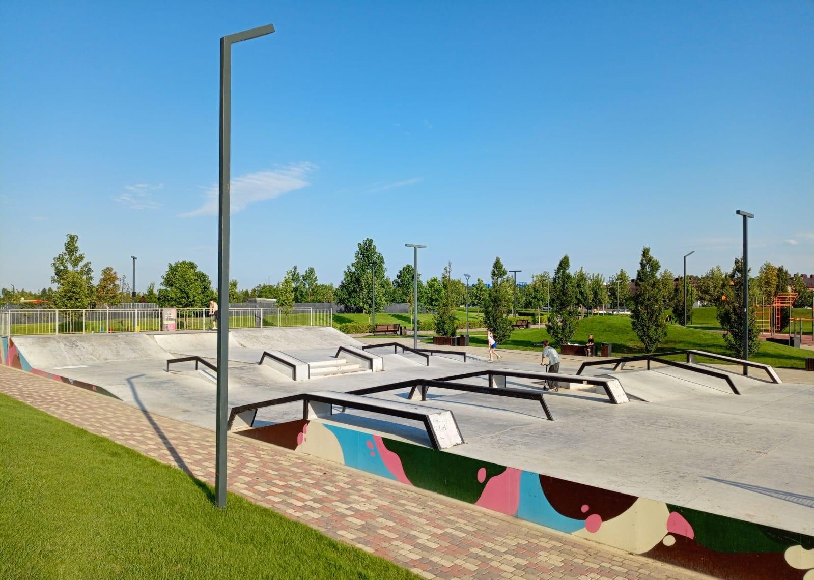 На территории комплекса можно прогуляться по аллеям с арт-объектами, насладиться музыкой поющих фонтанов, покачаться на световых качелях или перекусить в фуд-траке