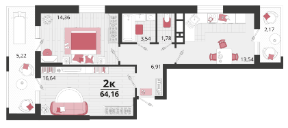 Продается 2-х комн. новостройка, 64.16 кв.м., 3/18 эт
