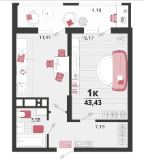 | Площадь, кв.м. | 43.43 |