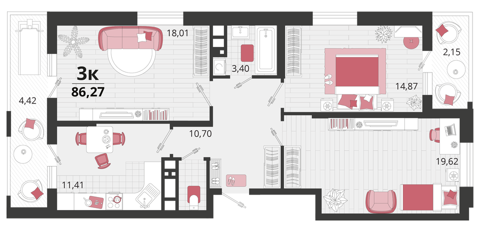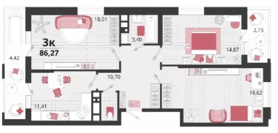 Продается 3-х комн. новостройка, 86.27 кв.м., 8/18 эт