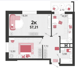 Продается 2-х комн. новостройка, 57.21 кв.м., 4/18 эт