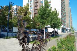 Большой парк: прогулочные аллеи и вело- дорожки, комфортные шезлонги, фонтан, амфитеатр для мероприятий, детский игровой городок, фудхолл и ресторанная галерея, зона для йоги, световые качели, скейтпарк, кинофестивальная площадка, зона воркаут и баскетбольное дерево, арт-объекты.