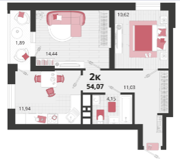 Продается 2-х комн. новостройка, 54.07 кв.м., 6/18 эт