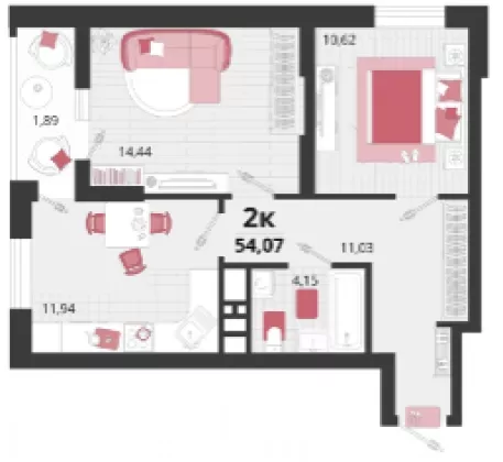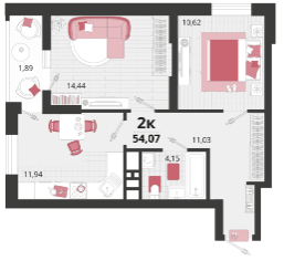 Продается 2-х комн. новостройка, 54.07 кв.м., 14/18 эт