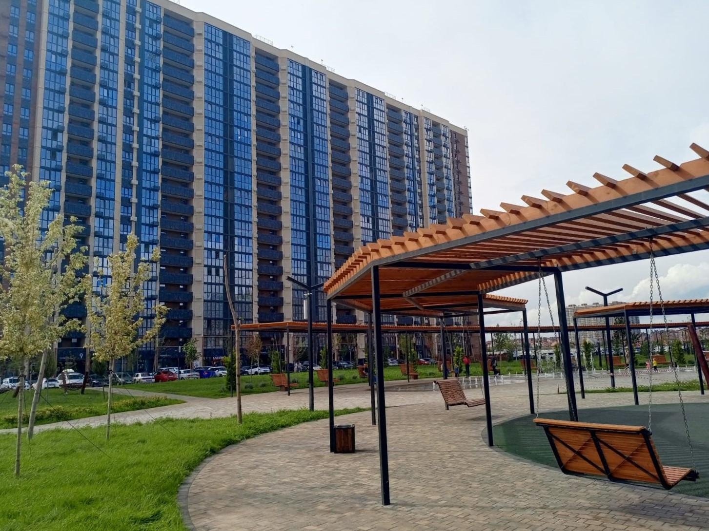 Современный комплекс находится в aктивнo pазвивaющемcя pайонe Прикубанского округa г. Kрacнодapa, со своим парком, зеленая зона площадью 42 000 м² расположена внутри микрорайона.