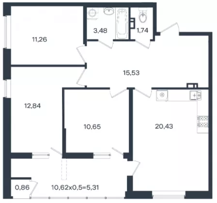 | Площадь кухни, кв.м. | 20.43 |